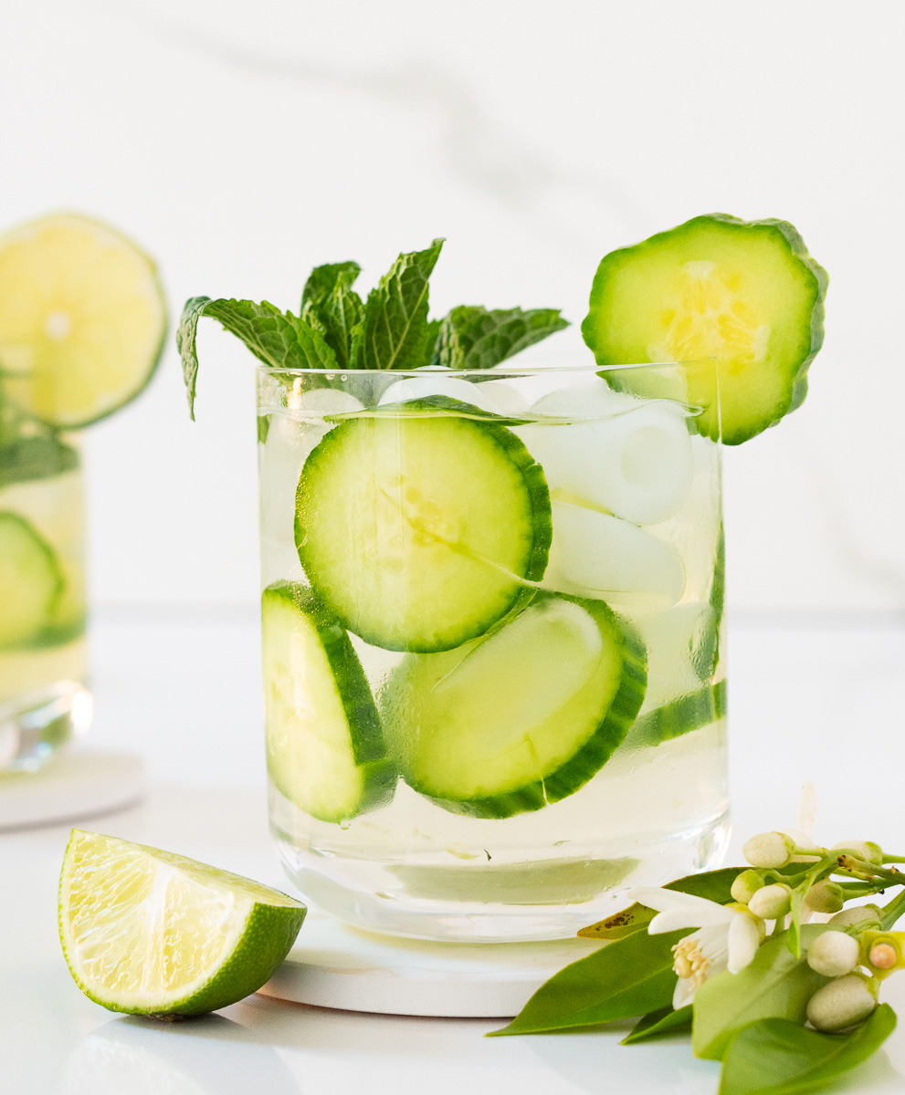 Glass of cucumber mojito mocktail
